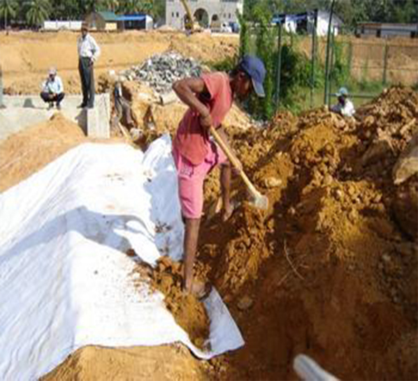 3、利用土工布增強土體的抗拉強度和抗變形能力,增強建筑結構的穩定性,以改善土體質(zhì)量。