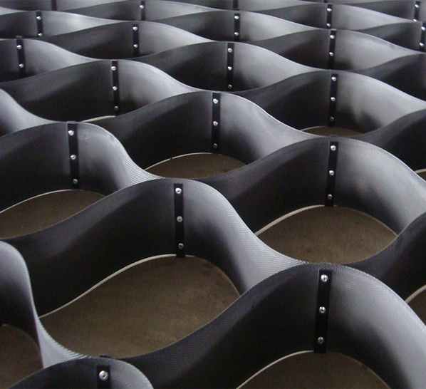 土工格室是由高強度的HDPE或PP共聚料寬帶,經(jīng)過(guò)強力焊接或鉚接而形成的一片網(wǎng)狀格室結構。它伸縮自如,運輸時(shí)可縮疊起來(lái),使用時(shí)張開(kāi)并又充填土石或混凝土料,構成具有強大側向限制和大剛度的結構體。它可用來(lái)做為墊層,處理軟弱地基增大地基的承載能力,也可鋪設在坡面上構成坡面防護結構,還可以用來(lái)建造支擋結構等。