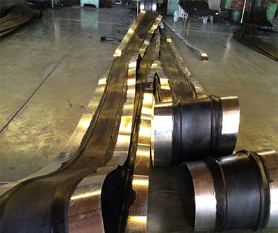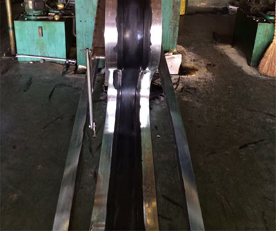 三、工藝流程:我們可以先將經(jīng)過(guò)先期處置的鍍鋅鋼帶拔出橡膠兩頭硫化成形,兩者之間的粘結力的結實(shí)性,具有分明防滲止水方面的效果。鋼邊止水帶的兩頭橡膠體在構造變形時(shí)被緊縮、拉伸、變形,而起到密封止水作用;鍍鋅鋼帶與混凝土有著(zhù)良好的粘附性,不易零落和松動(dòng),使止水帶能接受較大的拉力和扭力。在施工中由于混凝土澆筑時(shí)的宏大振動(dòng)力和不易固定,會(huì )使普通橡膠止水帶發(fā)生移位、扯離、改變而呈現松動(dòng)和零落,致使在水壓較大的狀況下會(huì )發(fā)生滲漏景象,而采用鋼邊橡膠止水帶時(shí),由于鋼帶與混凝土、鋼帶與橡膠之間不會(huì )發(fā)生新的滲漏縫。